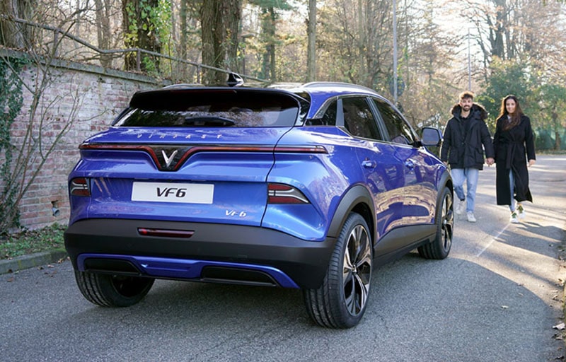 Tiến về phía đuôi VinFast VF6 chúng ta tiếp tục bắt gặp những điểm thiết kế mang tính nhận diện thương hiệu ô tô Việt như dải LED đỏ tạo hình chữ V lớn, trải rộng sang hết 2 bên hông xe.