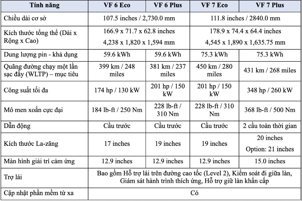 - Dung lượng pin khả dụng (kWh: 59,6 (Eco) | 70,8 (Plus)