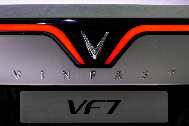 Đuôi xe VF 7 được thiết kế dải đèn LED hình chữ “V” quen thuộc, đặc trưng của thương hiệu VinFast. Bên cạnh đó, đèn lùi được trang bị hướng về hai bên viền xe. Chính giữa khu vực gắn biển số được sơn màu đen tạo sự tương phản, nổi bật, ấn tượng mạnh cho người nhìn.