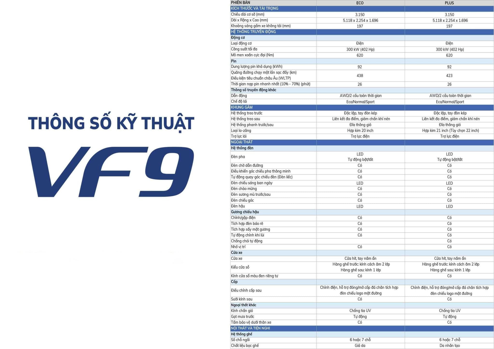THÔNG SỐ KỸ THUẬT VINFAST VF9